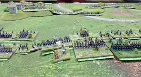 Typical to our rules, both of us have no issues in the first few turns of moving the troops we want to early on. The centre was happy to just exchange artillery fire with both sides taking a few casualties. Only once both sides are starting to get to close quarters do we find ourselves wishing for just one more move or desperate to get the first move in. Typically this battle would have a few moments where we would have contemplated selling our own mothers for that next activation roll!