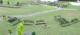 Finally we are at that point where we can sit back and say, that's a wrap. Well sort of as lets face it were a breed that never has really finished titivating rules, even our own. I say our own but it's no secret that we have taken bits of other systems and worked them together. The last piece was a complete re-work of the combat tables, replacing a morale based system with a casualty one. I still like the morale version for small games but bigger games the new combat works so much faster and as such better. We still have to try with a really large game but that's happening a week on Sunday. Once that is done we finally will get Project Waterloo played out as a game. I really can't wait for that. We played another test game a few weeks ago and it was a blast that saw fortune waver both sides at different points, below is the game report.